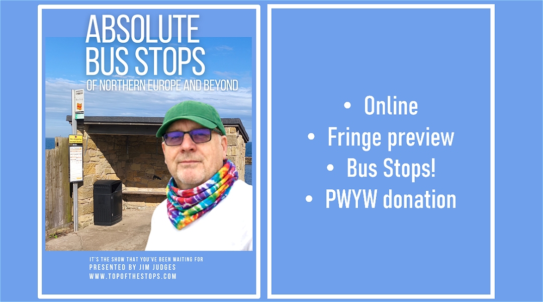 The wait is over. Grab a ticket and climb aboard for a multimedia comedy show celebrating the overlooked magic, mystery, and beauty of bus stops. From “bleak chic” in a layby on the A47 to a sun drenched Swedish super shelter in Getgubben, Båstad. Learn about the Bus Stop Rating System and more. Warning: jokes subject to delay.
