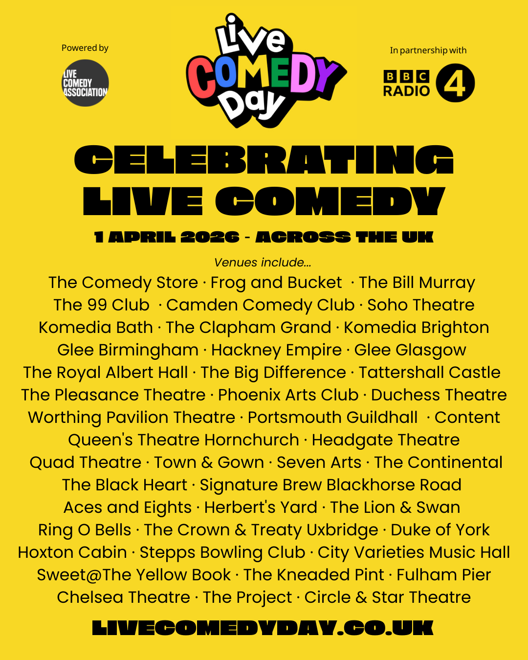 Live Comedy Day 2026: from 30 seater venues to 3,500 - and everywhere in between.