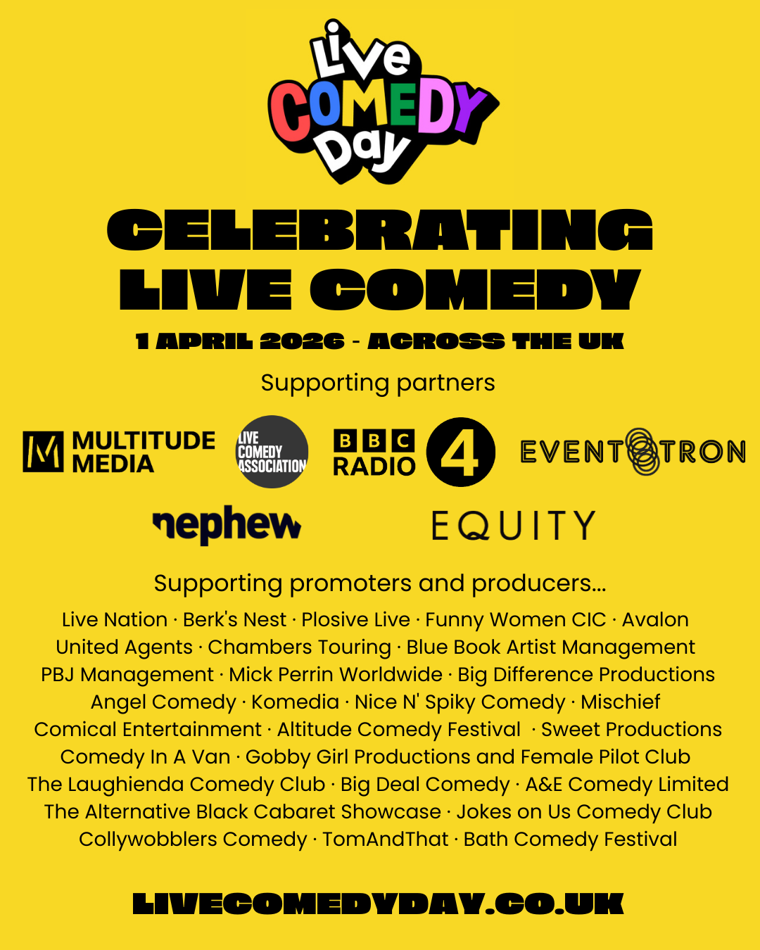 With a combined venue capacity of 20,000, the day was backed by supporters including Dame Caroline Dinenage MP, Jon Petrie and Julia McKenzie (BBC), Sara Wajid (Birmingham Museums Trust), and Mark Davyd (Music Venues Trust) - all championing the people and places that keep live comedy thriving.