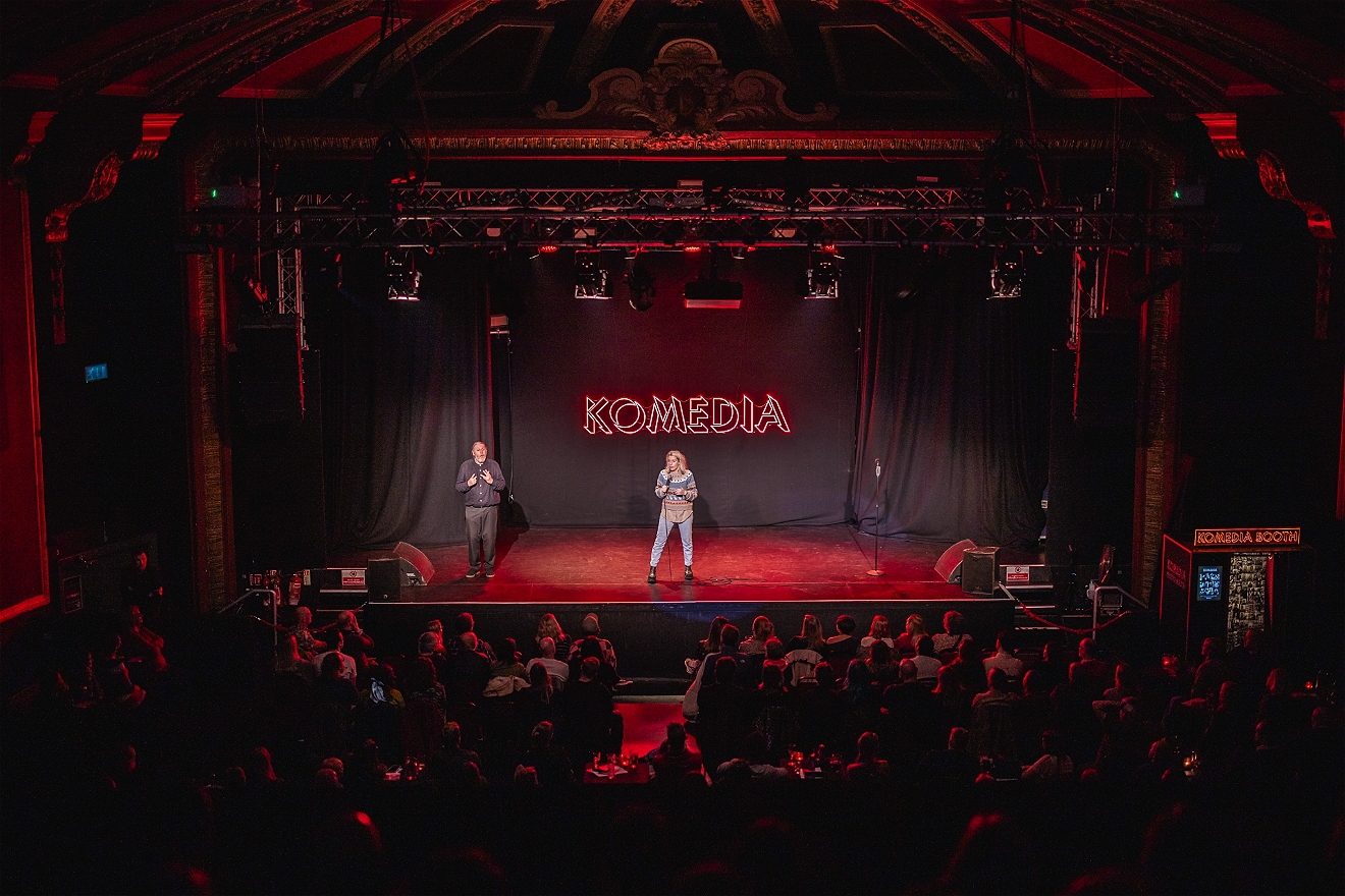 Komedia is a community-owned live entertainment venue in the heart of Bath, housed within the beautifully restored Grade II listed former Beau Nash cinema. Hosting over 400 events each year, it has become the region’s leading destination for touring entertainment, welcoming major names in stand-up and beyond. Comedy lies at the core of its programme, with the award-winning Komedia Comedy Club taking centre stage every Saturday night – widely regarded as one of Bath’s best nights out and a must-visit for fans of live stand-up.